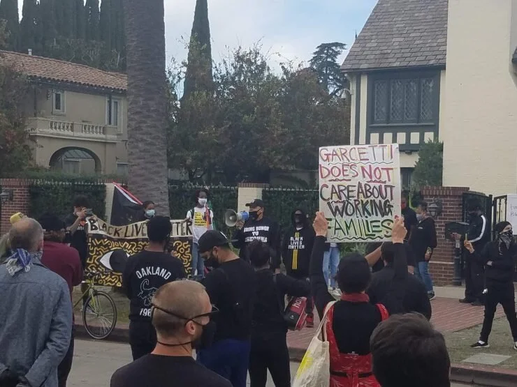 Protesters gather in front Mayor Garcetti's mansion in Los Angeles (Shant Mirzaians/The Wash).